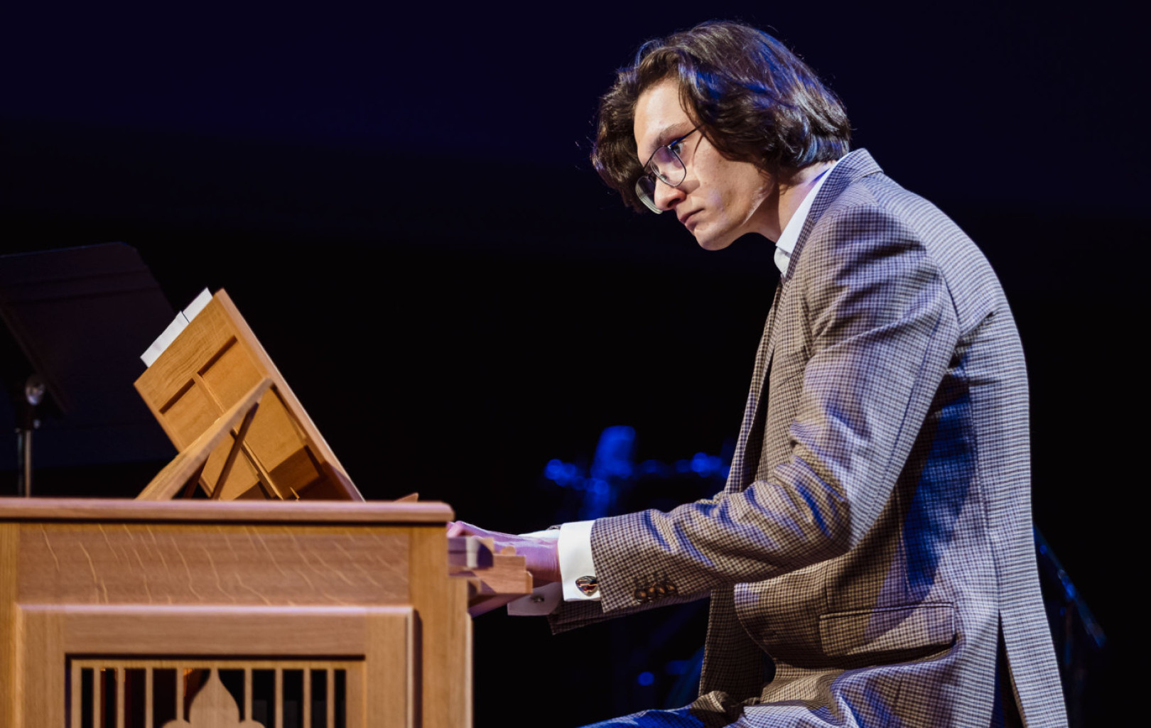 Student III roku studiów licencjackich na Wydziale Instrumentalnym w klasie organów dr hab. Jarosława Wróblewskiego, prof. UMFC oraz dr Wojciecha Bednarskiego.